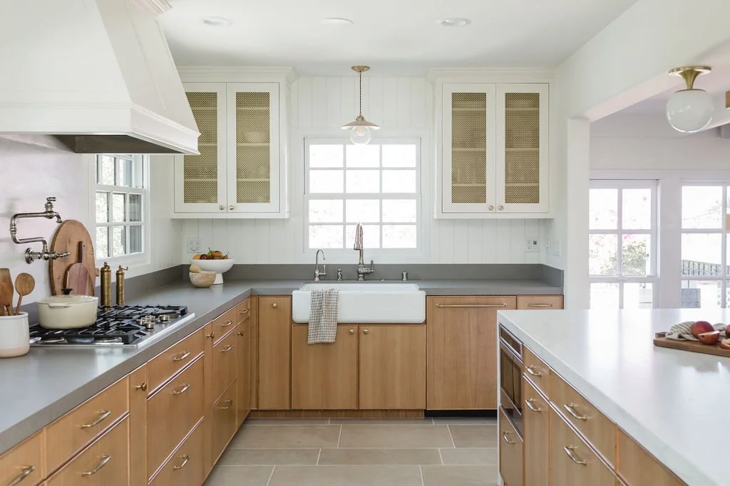 There are some kitchen styles that will always be timeless - white cabinets, wood floors, neutral countertops. Lately warm wood accents are popular, as are colored cabinets, statement backsplashes, and mismatched counter materials and/or cabinet colors.