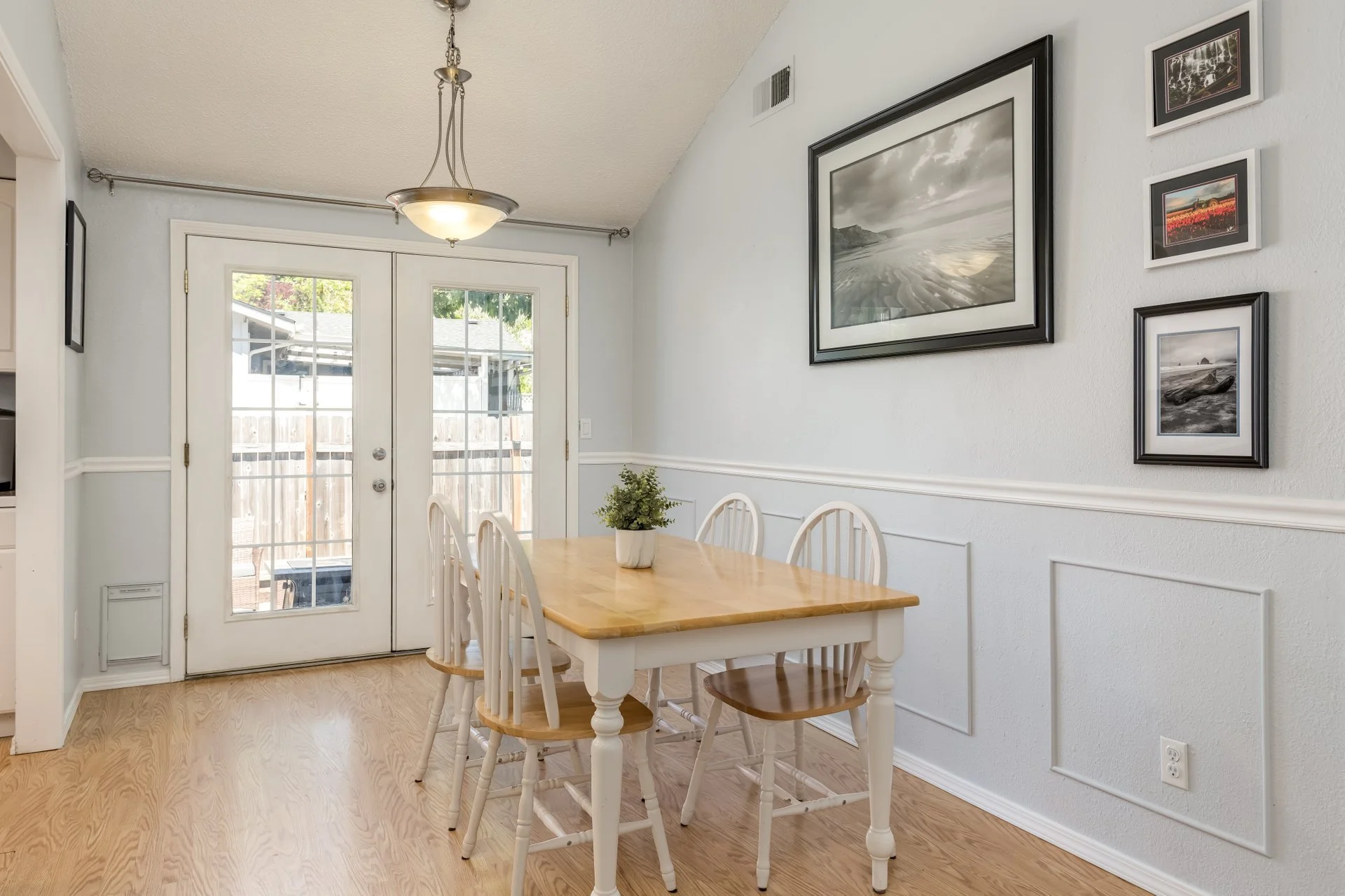 Vaulted ceilings in the living room and dining room