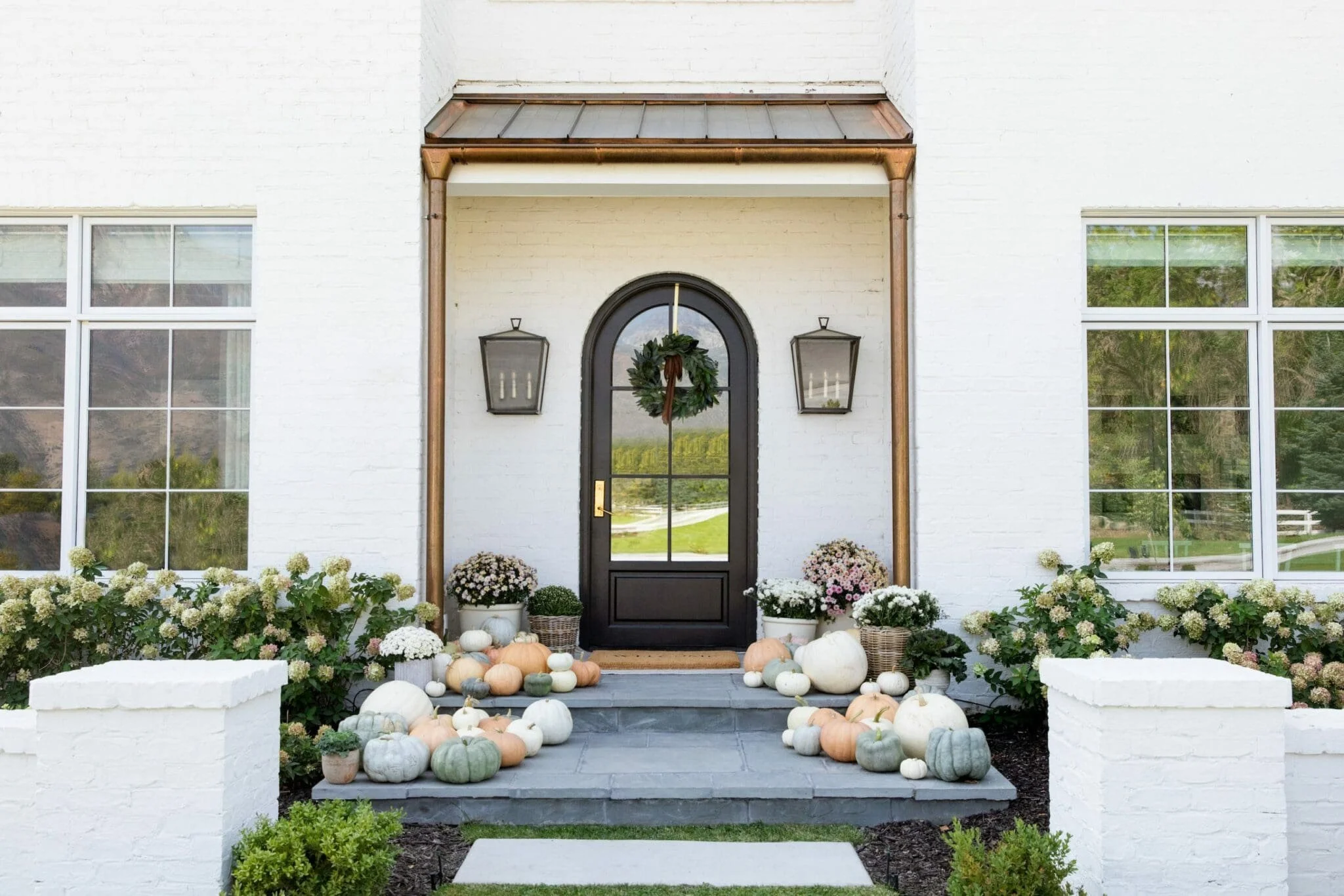 However, there is obviously nothing I can do to stop the passage of time, so I might as well embrace the changing weather and lean into the cozier aesthetic that fall brings. I really do love a well-curated front porch with pumpkins, fall florals and a show-stopping wreath. Here are some gorgeous examples of fall styling done right.