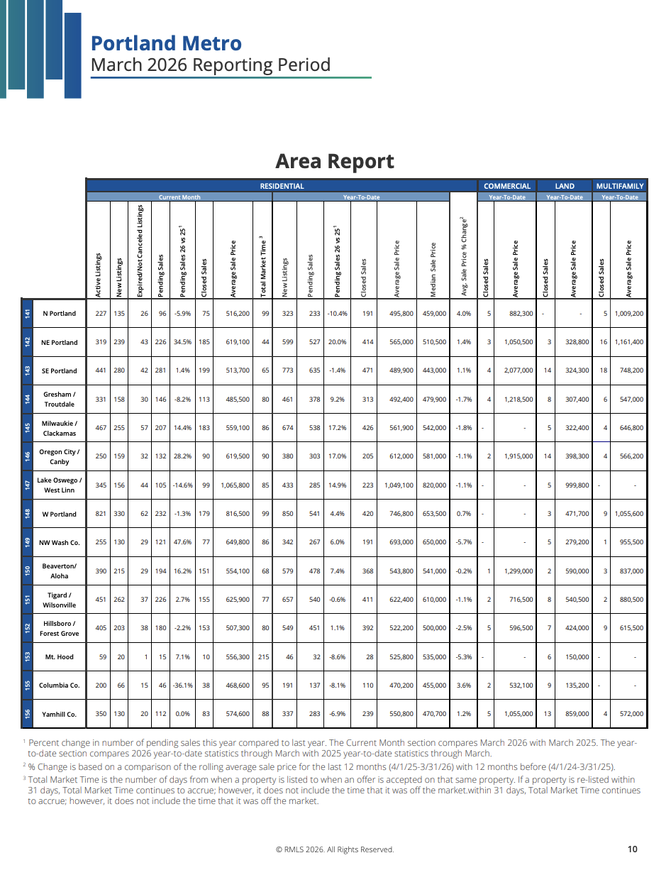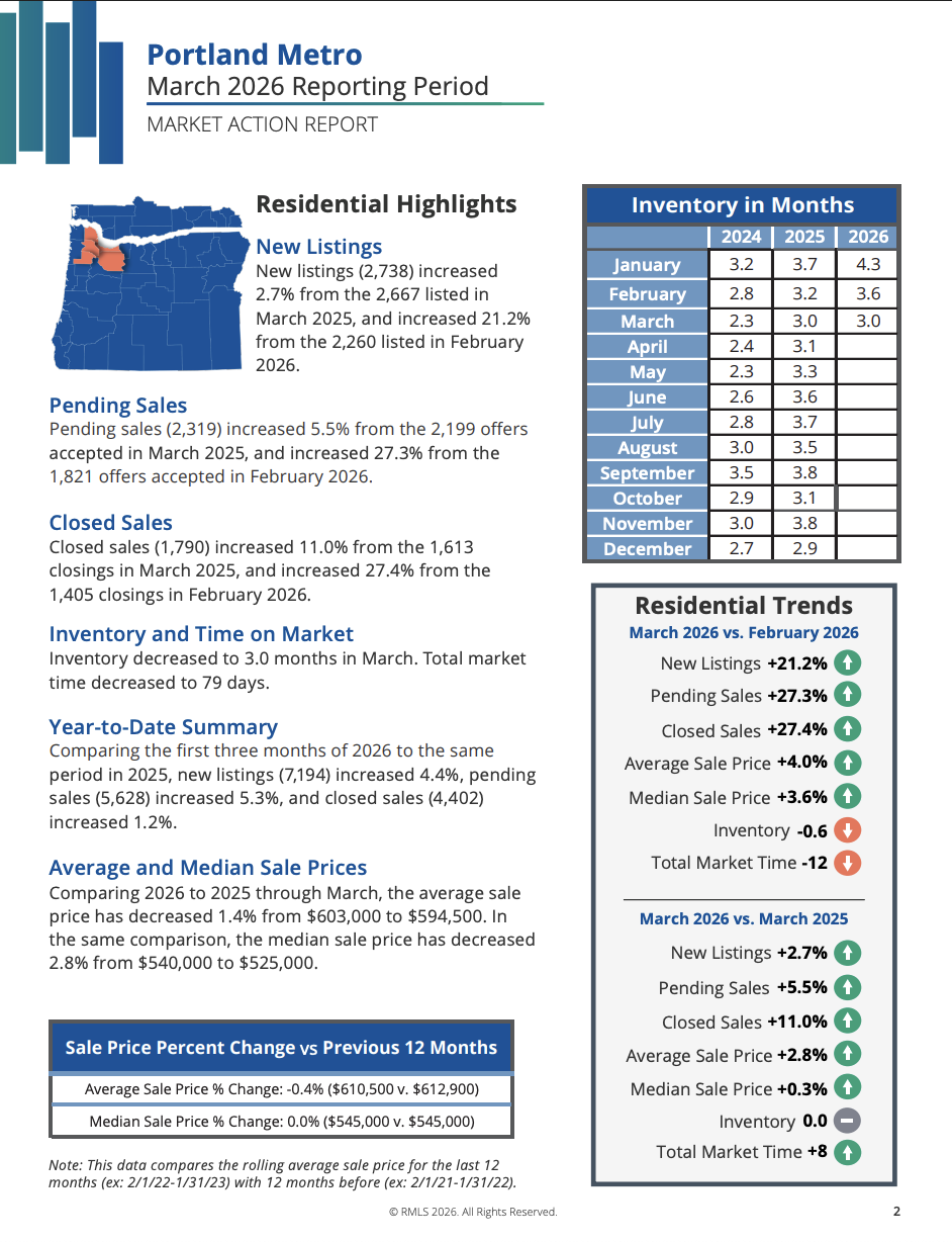 Here is the March 2026 Market Action Report for the Portland Metro Area. Please give me a call if you have any questions, or would like to discuss buying or selling a home!